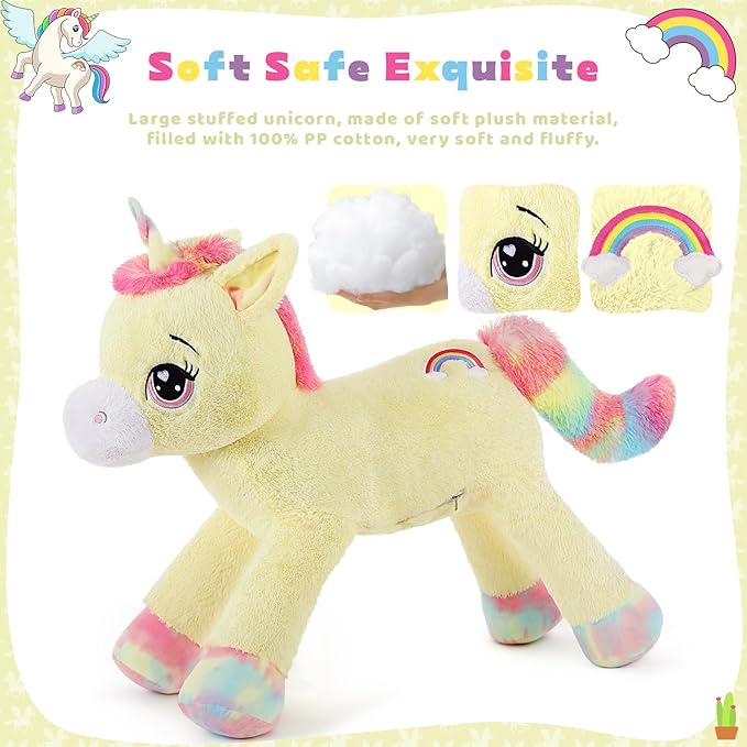 Tezituor 43 inch Unicorn Stuffed Animals, Large Unicorn Plush Pillow for Boys Girls, Soft Plush Toys for Kids, Christmas, Birthday, Valentine's (Yellow)