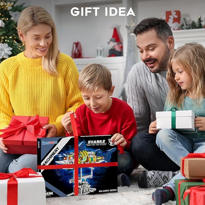 - Creative Machinery Shark Set - INSOON shark toy building set consists of a semi-mechanical fish body and a support base with a built-in gear system, cleverly combining shark elements with machinery. Providing children with extraordinary visual experiences and immersing them in a marvelous world of underwater exploration. It is perfect for children aged 12, 13, 14 and above