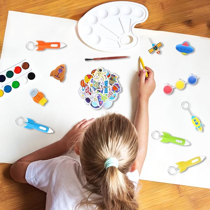 - Great gifts for kids: Perfect space-themed party fillers, with all kinds of really fun toys, including various types of fun key chains, various stickers, space-themed plaster dolls that let you use your imagination to paint