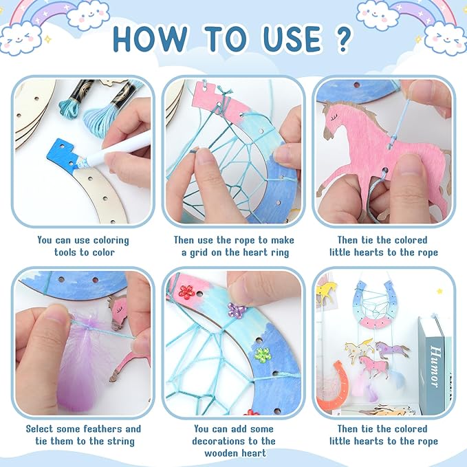 - Enioy DIY Crafts: our DIY wooden wooden horses craft kit, choose your love color and decor, Unfinished wood horses can paint, stain, decorate, and assemble the dream catcher in their imagination, perfect for making gifts, door curtains, or other horses themed craft hanging decorations