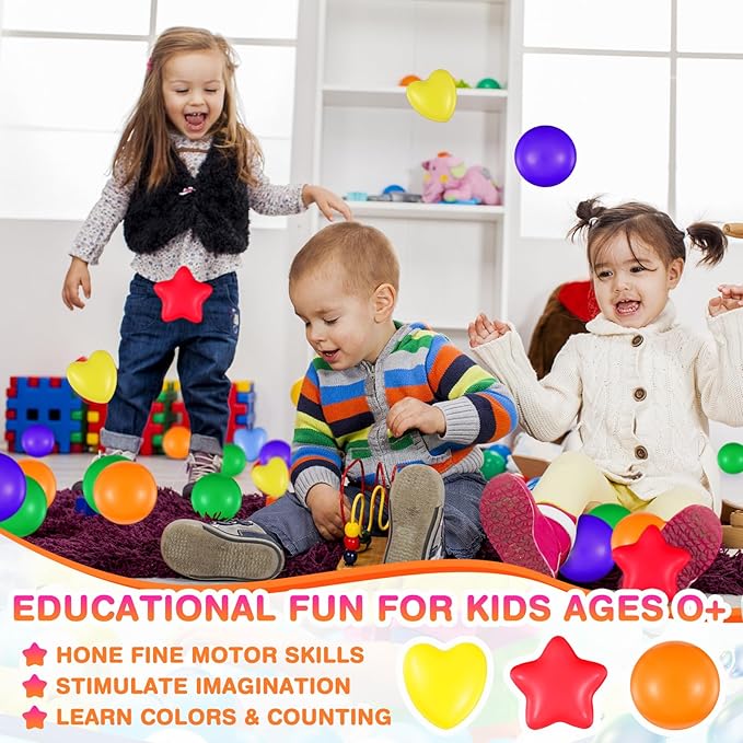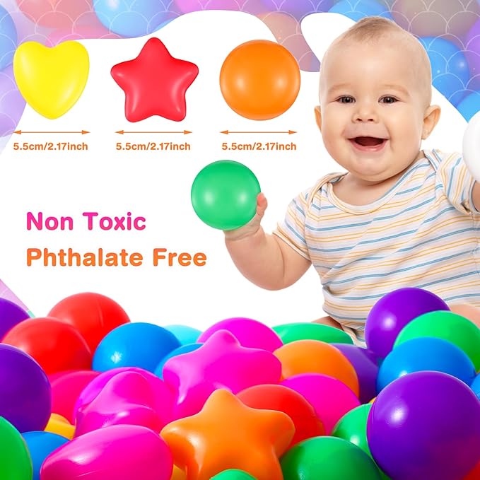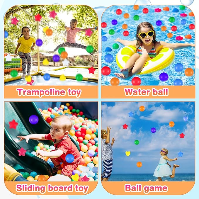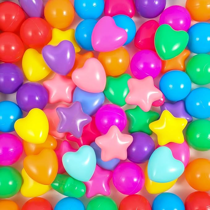 - Funny Party Accessories: embellish your child's birthday party or other special occasions with these star, round and heart shaped ball pool balls; They're suitable for filling up pits, tents, playhouses, kiddie pools, playpens, and bouncy houses; Create an unforgettable event filled with laughter and joy