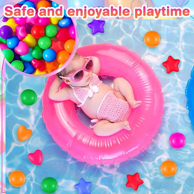 - Aesthetics and Durability: the plastic balls for pool aren't just colorful, but feature novel star and heart designs; The lovely shapes make them even more appealing to children, and equally durable to withstand hours of fun