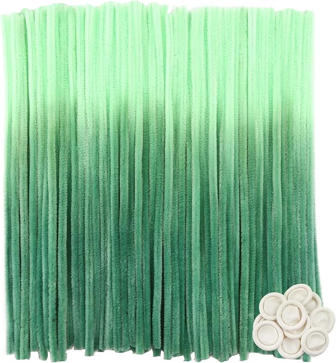 TOAOB 100pcs Pipe Cleaners Gradient Green Chenille Stems for Crafts 12 Inch Fuzzy Sticks Craft Supplies for DIY Art Craft Projects Home Decorations