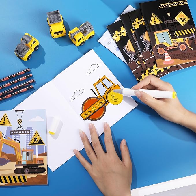 - Developing Skills: The construction party favors book includes illustrations of engineering vehicles, which not only enhances children's hand eye coordination skills but also cultivates creativity. The sense of achievement brought by completing a work also helps to improve children's confidence.