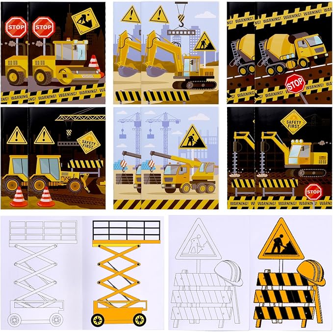 - Packaging Content: You will receive 12 construction engineering vehicle coloring books, with a total of 6 styles and 2 pieces of each. Each album contains 12 inner pages, including various patterns of construction vehicles such as excavators, bulldozers, and cranes.