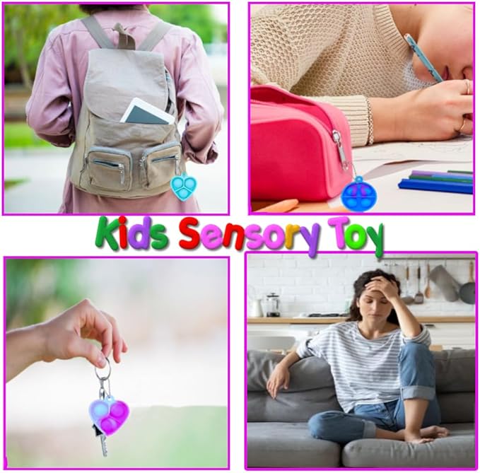 - Pop fidget toy can not only relieve stress, but also serve as a small game for party friends;This multi-purpose silicone squeeze toy is the perfect game for parents, seniors, children and adults toys. Have fun anytime, anywhere with this awesome sensory tool;These fidget toys great for kids birthday party favors, carnival prizes, pinata fillers, christmas stocking stuffers, Christmas giveaways, goodie bag fillers, miniature novelty toys.