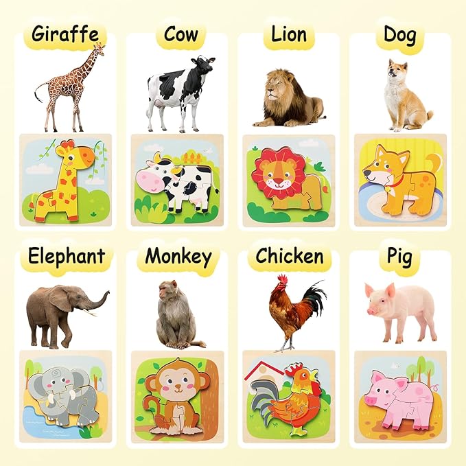 Wooden Puzzles for Toddlers 2-4, 8 Pack Animal Puzzles for 1-3 Years Boys Girls, Montessori Educational Toy for Ages 1-4, Baby Learning Toys Gifts with Storage