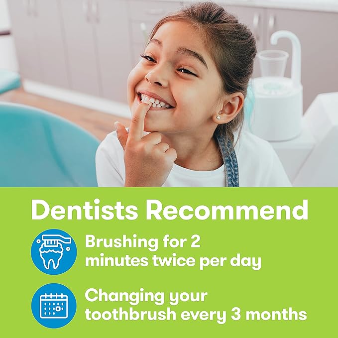 - Dentist Recommended: Dentists recommend brushing your child's teeth for 2 minutes, twice per day for proper oral care, resulting in healthy teeth and brighter smiles