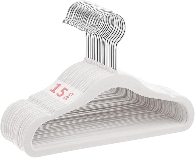 Kids Velvet Hangers 15 Pack, 11 Inch Size Non-Slip Baby Hangers, Space-Saving Nursery Hangers, Perfect Infant/Toddler Clothes Hangers for Daily Use(White)