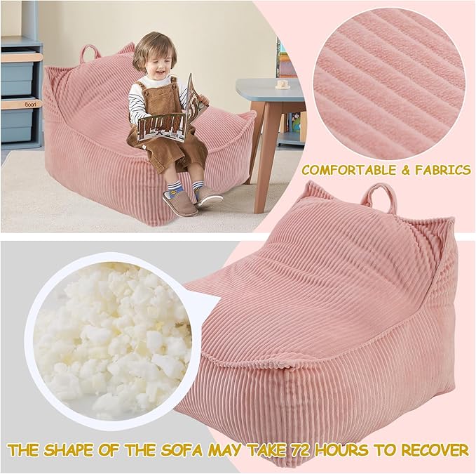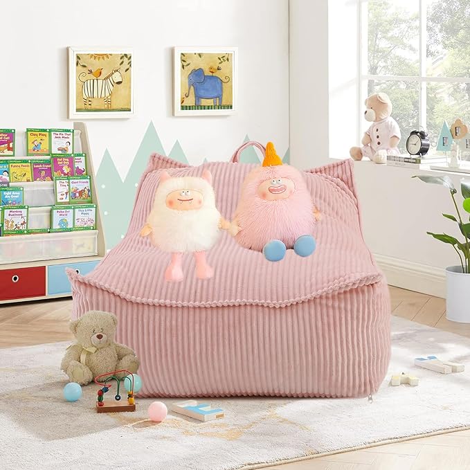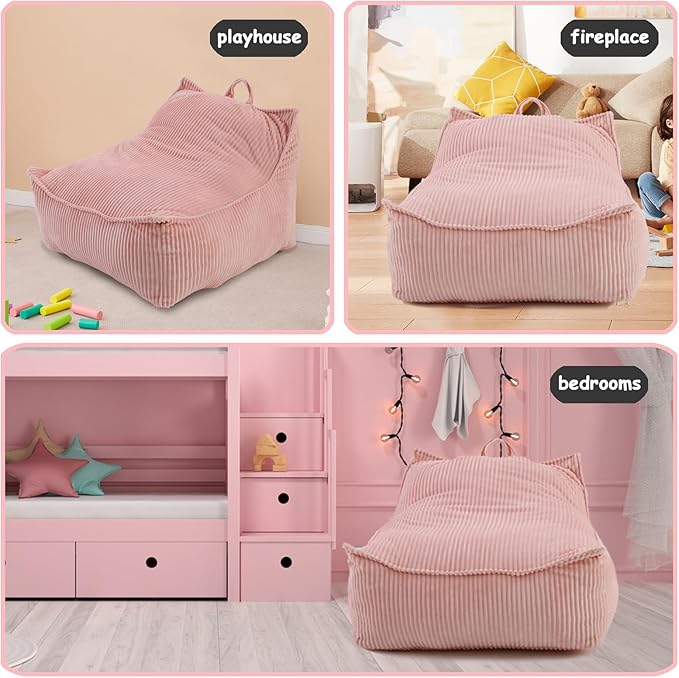 Bean Bag Chairs for Adults/Kids, Lounge Reading Chair with Memory Spone Filling, with Removable and Machine Washable Cover, for Living Room/Bedroom (Pink)