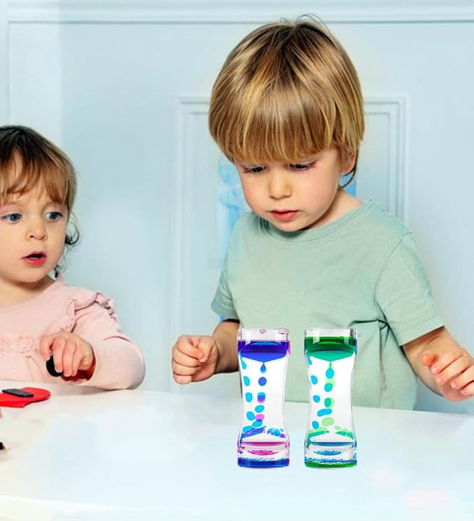 - Convenient to carry : The liquid motion sensory toy measures 5.5 * 2.2 inches, easy for children to hold, convenient to carry, you can take it out and use it anytime and anywhere. When you are distracted use this fun motion bubbler, you will feel comfortable to decompress, the liquid timer is not only able to be used as a toy, but also can be used as a decoration in your home or office