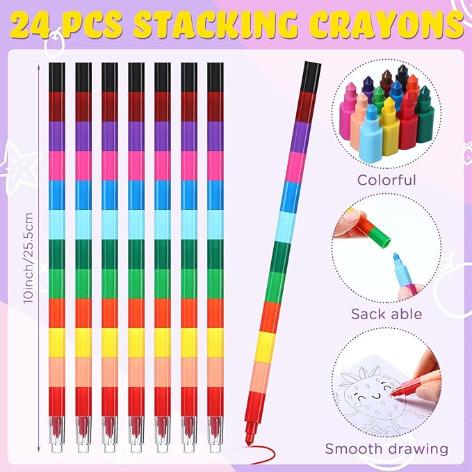 - Nice Gift Choices: this pool coloring books with stackable crayons set is the nice addition to any summer themed party or event; Whether you're hosting a summer party, looking for a rainy day activity, or just want to keep the children busy, these summer fruit coloring books are the nice solution; Watch as your little artists proudly display their colorful creations or use them as handmade gifts for friends and family; Spark creativity and imagination with this fun and engaging coloring set