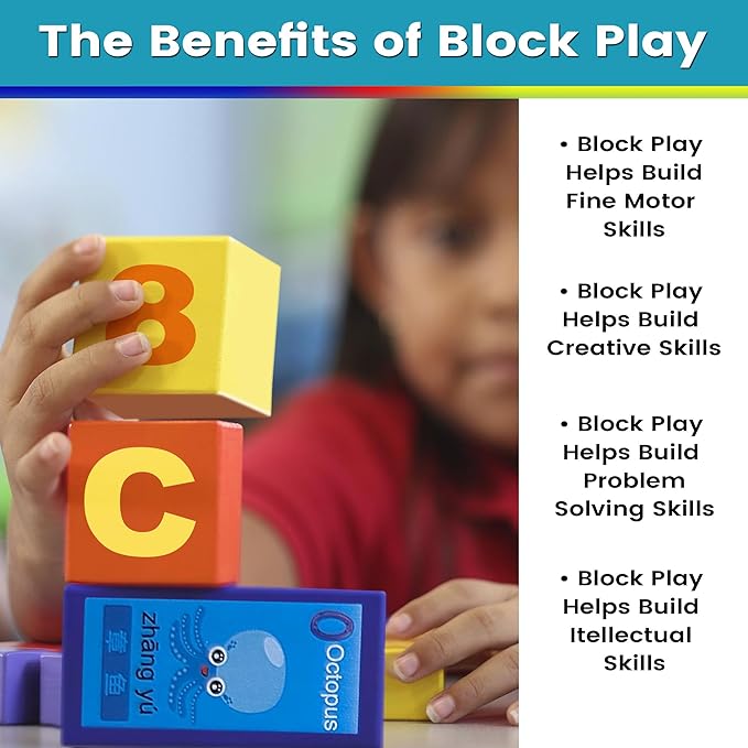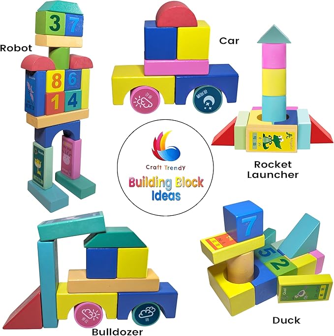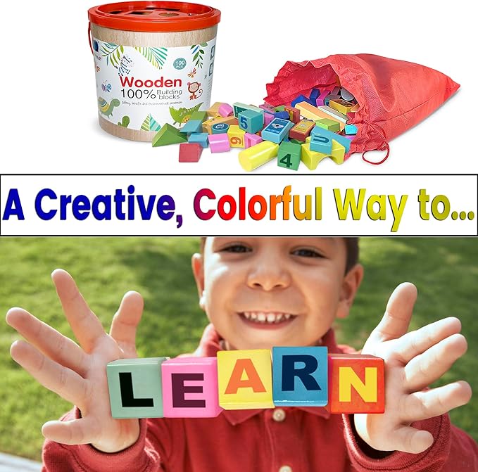 - LEARN THROUGH PLAY: This multi-colored set of wooden blocks encourage creative building and helps develop motor skills, problem solving and spatial reasoning in young children.