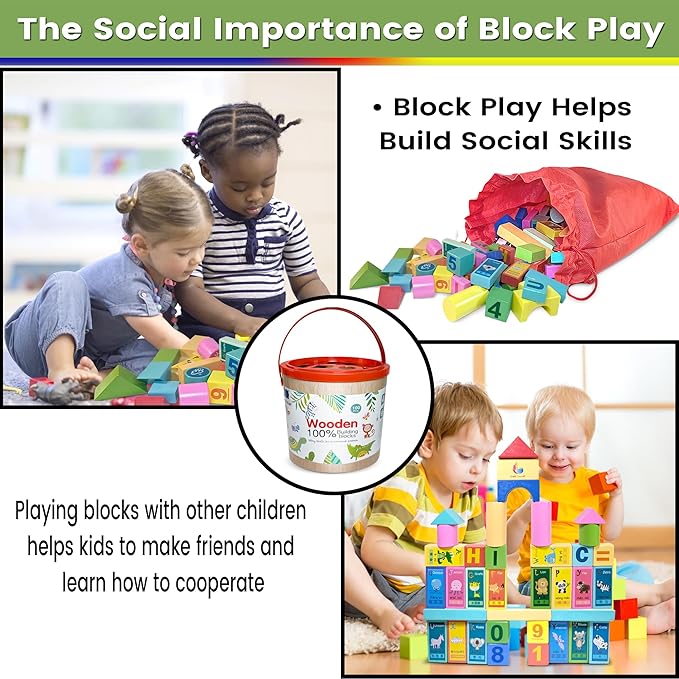 - DURABLE CONSTRUCTION: Made of solid wood, each block is sanded smooth and finished with a non- toxic lacquer to withstand years of play while being gentle on little hands.