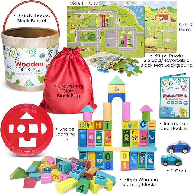 - CONVENIENT STORAGE: The plastic storage bucket doubles as a toy box, keeping all the block neatly contain when not in use and allowing children to easily transport their creations.