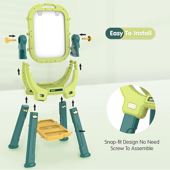 - Easy to Assemble - Our easels are suitable for toddlers and small children and can be assembled in less than 5 minutes. Different from other drawing board multi-screw attachment installation cumbersome.