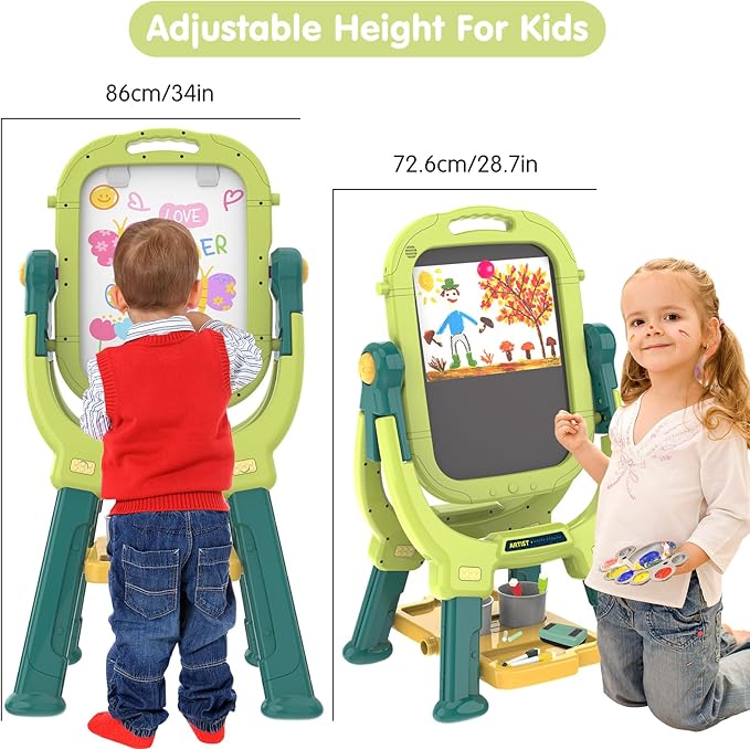 - Adjustable Height - Our easels comes with 2 sets of legs so you can adjust for height, suitable for children between 3 and 7 years old. The height of the easel can be adjusted according to the different ages of the child. This means that you only need one easel to meet your child's needs from kindergarten to elementary school.