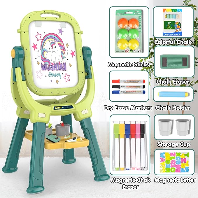 - Educational and Development - Toddler Art Easel is more than just a toy; it's an excellent tool for nurturing creativity,drawing and writing on the board improve hand-eye coordination and cognitive development. It also supports self-expression, problem-solving, and concentration in kids.