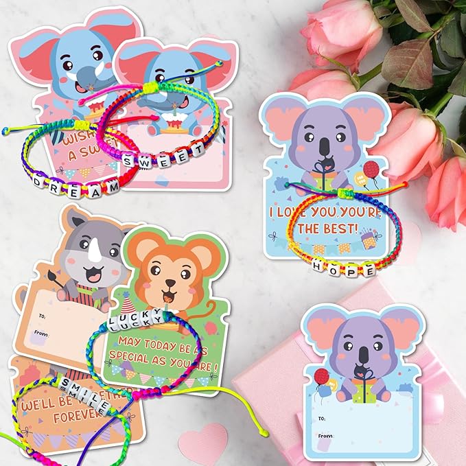 - [Excellent Birthday Party Favor Set]: Bulk Beaded Bracelets with birthday cards are perfect for preppy jewelry, birthday Party Favors, Classroom Exchange Gifts, School Class Prizes, children's Valentine's Day, classroom activities, gift exchanges, and Valentine's Day gift exchange. It could add more novelty and freshness to children's normal life.