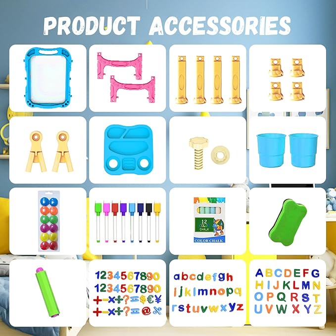 - Combining Fun and Learning: In addition to nurturing artistic skills, children's art easels offer a wonderful opportunity to merge playtime with education. They can be used to teach fundamental concepts such as letters, numbers, shapes, and more, allowing children to learn while engaging in creative activities. To further enhance their learning experience, we provide magnetic alphabet and number tiles as a helpful educational resource.