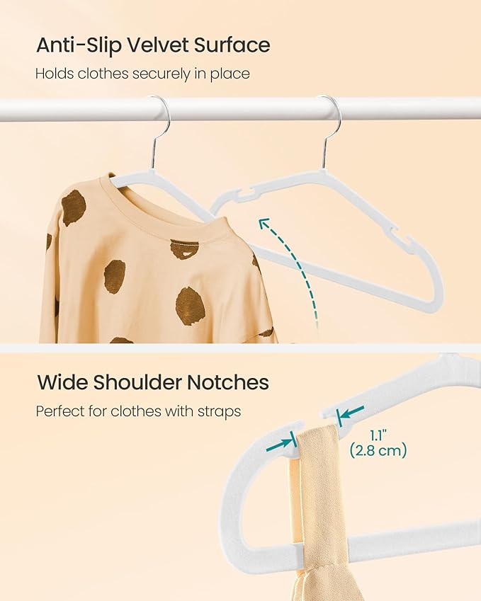 SONGMICS Baby Hangers 50 Pack, 11 x 6.9 Inches, Kids Hangers for Closet, Non-Slip Velvet Hangers, Childrens Hangers, Space-Saving Clothes Hangers, Wide Shoulder Notches, Cloud White UCRF037W01