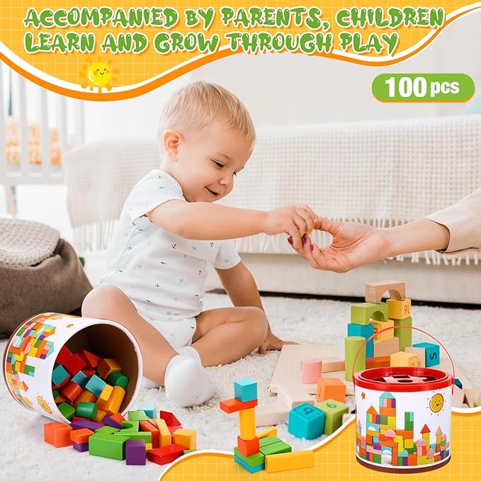 - Convenient Storage: our set includes a portable container for easy storage, and with holes in the lid for various shapes, parents don't have to worry about cluttering up the room while you are challenged to recycle their blocks and learn