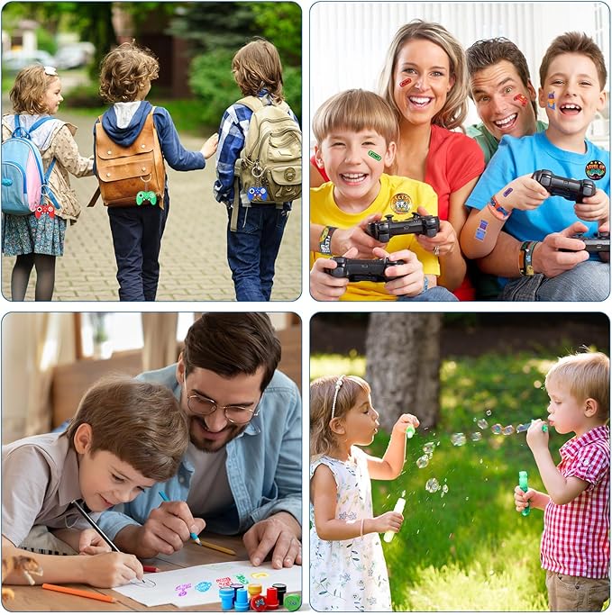 - Sturdy and Safe: the items of video game birthday party supplies are made of quality materials that ensure durability; The video game keychain charm, bracelet, and straw charm are crafted from silicone, while the stickers have a robust self adhesive PVC construction; Tattoo stickers with water transfer can be easily cleaned with water; The cards are made from sturdy kraft paper, ensuring long term use