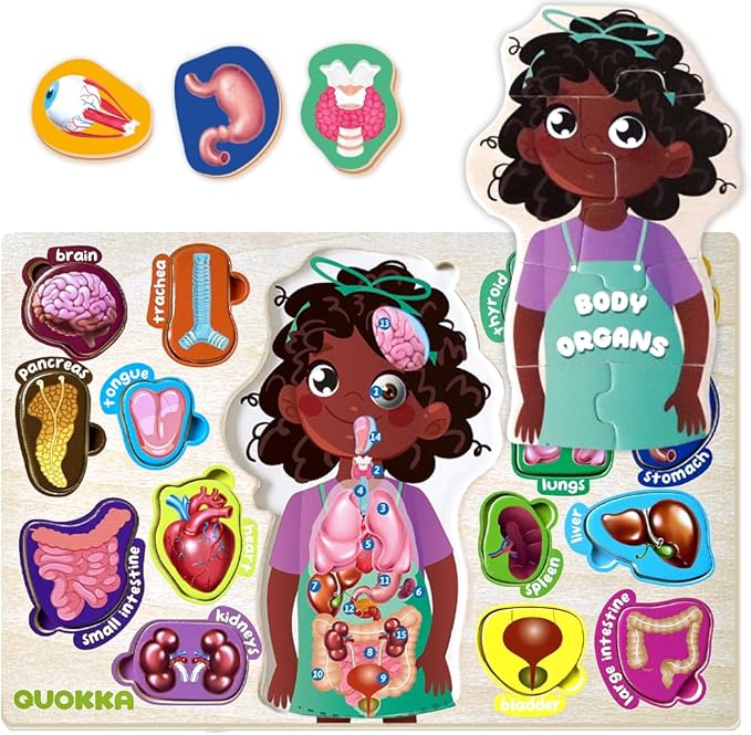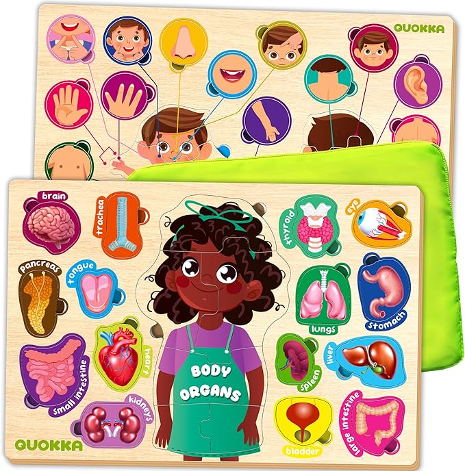 - ANATOMY LEARNING FOR KIDS: Human Body wooden puzzles boards are interesting for toddlers ages 18 months, kids ages 1-2; This educational set improves eye-hand coordination, logic, basic knowledge of our body