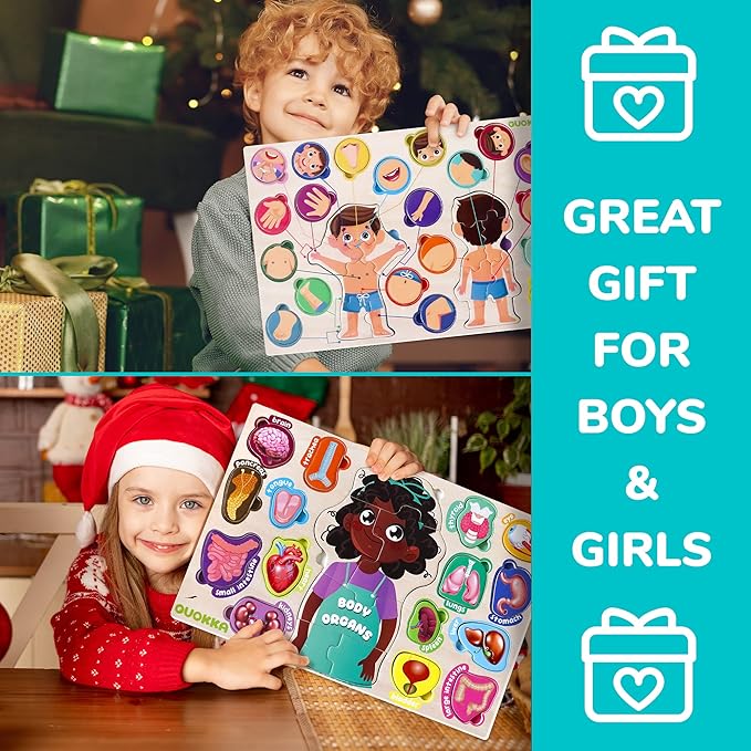 - TODDLER LEARNING TOYS: with 2 large preschool puzzles kid learns human body parts functions - Organs Skeleton Muscles Circulatory System; Well polished boards and big jigsaw pieces are safe puzzles for toddlers