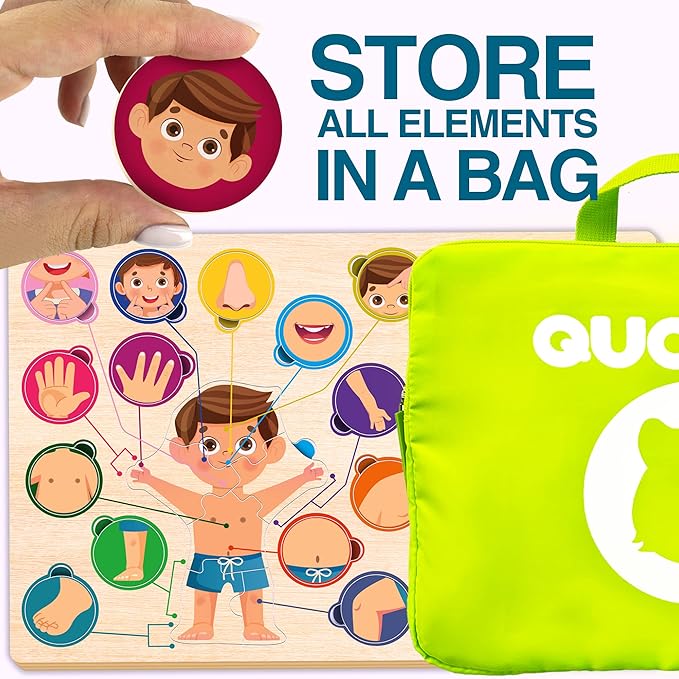 QUOKKA Wooden Puzzles for Kids Ages 18+ Months in a Bag – Montessori Toddlers Puzzles Ages 1-2 – Preschool Game to Learn Human Body Parts Anatomy Skeleton – Educational Toys for Boy & Girl