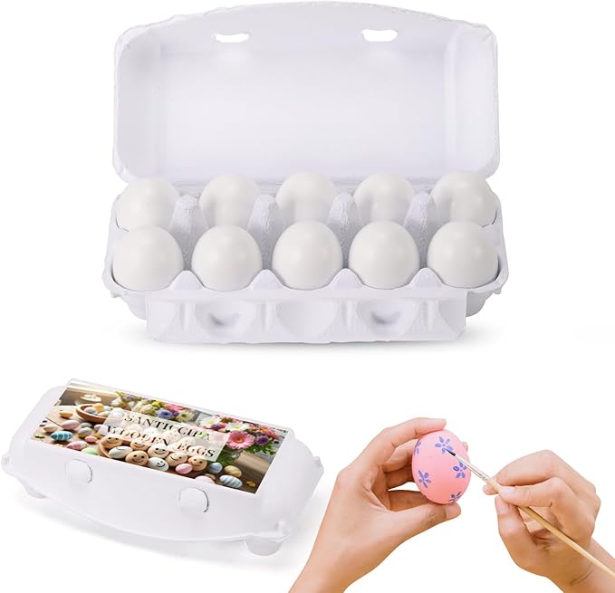 - This (10 count) of white fake eggs features a smooth surface, making them ideal for hand-painting, dyeing, and decorating. Whether using acrylic paint, watercolors, markers, or wood stains, these eggs are great for Easter egg painting, art classes, and holiday decorations.
