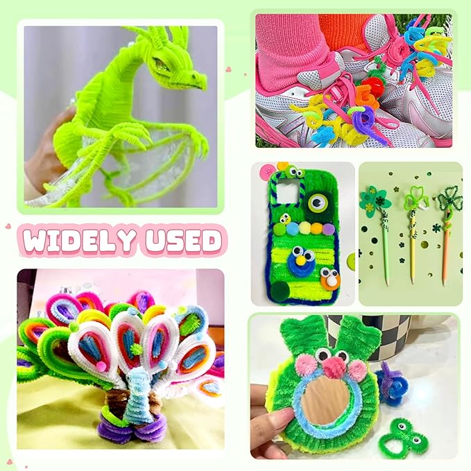 - Have Fun: Chenille Stems are perfect for DIY projects, opening your unlimited imagination and giving life to your craft projects. The making process can exercise your DIY ability. You can use these pipe cleaners as decorations for Halloween and Christmas