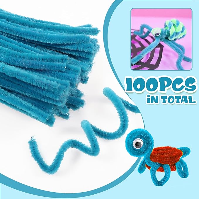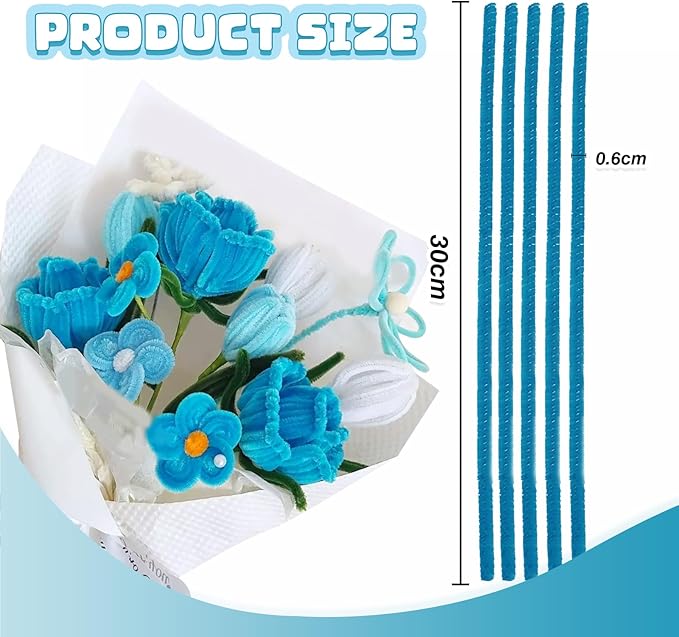 TOAOB 100pcs Pipe Cleaners Blue Pipe Cleaners Chenille Stems 6mm x 12 Inch Fuzzy Sticks Crafts Supplies for DIY Art Crafts Decorations