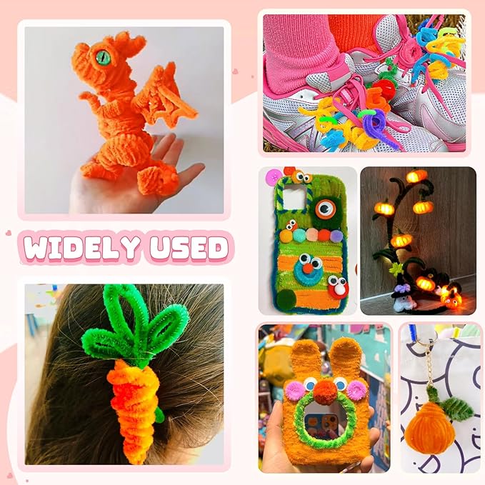 - Have Fun: Chenille Stems are perfect for DIY projects, opening your unlimited imagination and giving life to your craft projects. The making process can exercise your DIY ability. You can use these pipe cleaners as decorations for Halloween and Christmas