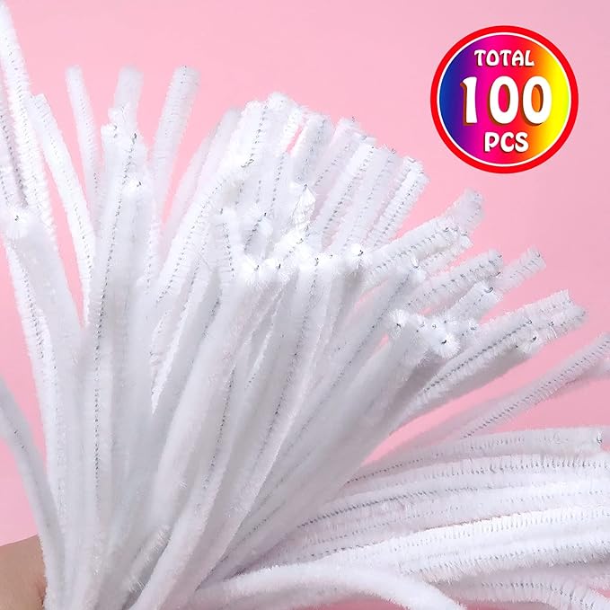 TOAOB 100pcs Pipe Cleaners White Pipe Cleaners Chenille Stems 6mm x 12 Inch Fuzzy Sticks Crafts Supplies for DIY Art Crafts Decorations