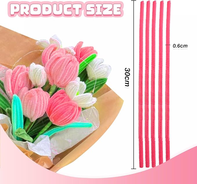 - Size: 100pcs pipe cleaners; 0.24 X12 inch (6 mmx300 mm). Enough quantity to meet your various needs of DIY craft creations