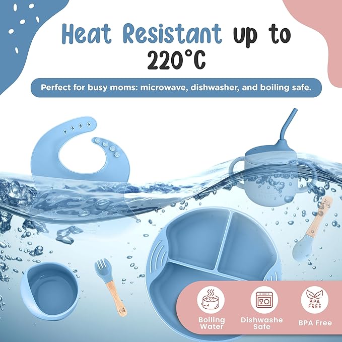• [Easy to Clean] Keeping your baby's clothes clean is easy with our pocket bib. Any dropped food is conveniently collected, and after meals, you can easily dispose of the collected food residue and toss the bib into the dishwasher for a thorough cleaning. In addition, the entire silicone set is dishwasher-safe, saving valuable time and effort on cleaning up