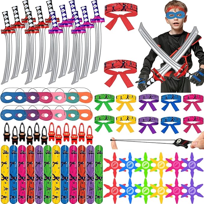 ZOIIWA 72Pcs Karate Party Favors Include Inflatable Sword Headbands Colorful Karate Party Decorations Karate Slap Bracelets Eye Mask Costume Accessories Gift Set for Kids Boys Girls Birthday Supplies