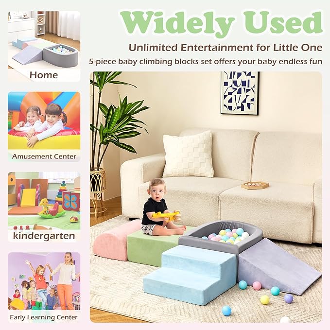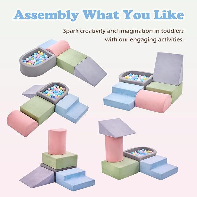 • 【Safe&Fun to Play】: Our climbing blocks with ball pit( hold up to 100 pcs balls, balls not Included) )are made from non-toxic and odorless fabric. Designed with hidden zippers to prevent scratching on children's soft skin, these climbing blocks provide a reassuring&safe environment for play. With a focus on safety, our foam blocks are built without hard structures or sharp edges to protect children from bumps and injuries.Your child can safely play, toddle, and roll on this climbing toy that offers a soft and supportive surface, providing peace of mind for parents