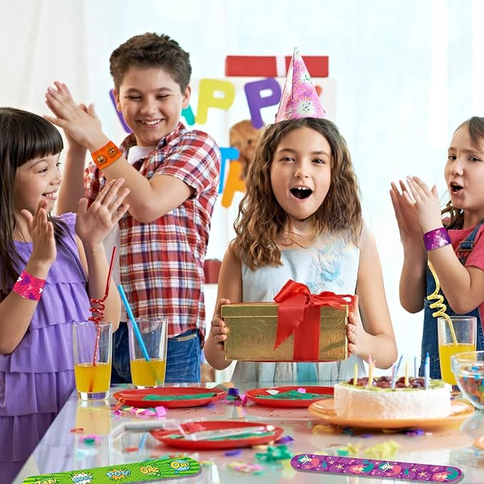 - ๐ป๐ป๐๐ซ๐๐๐ญ ๐๐จ๐ซ ๐๐๐ซ๐ญ๐ข๐๐ฌ ๐๐ง๐ ๐๐ฅ๐๐ฒ๐๐๐ญ๐๐ฌ-Whether it's a birthday party or a playdate with friends, these slap bracelets make for an exciting and entertaining activity. Kids can trade and share their favorite designs, creating lasting memories and fostering friendship.