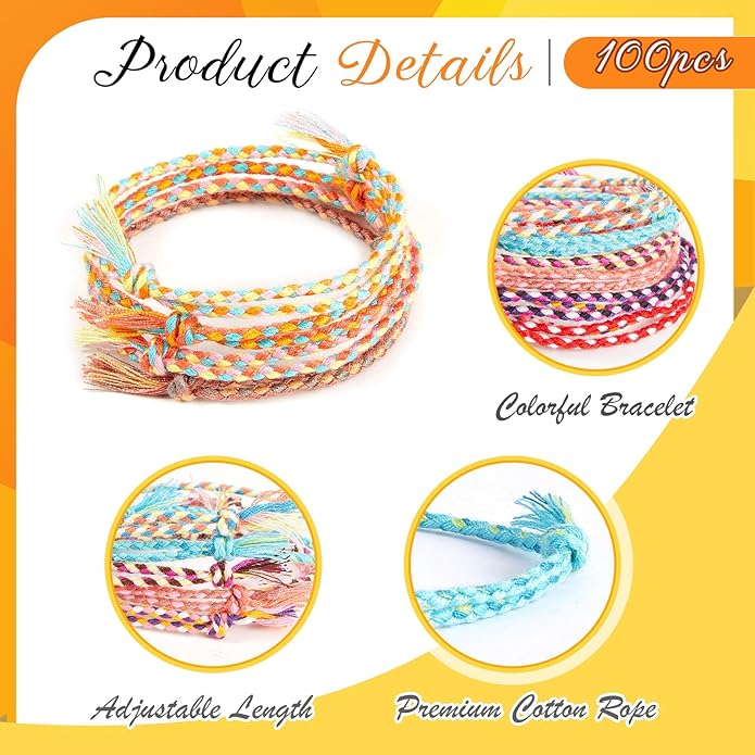 - Simple and Stylish: 200 colored friendly cotton handmade bracelets which can be worn alone or stacked at will, comfy and chic, suitable for your daily use