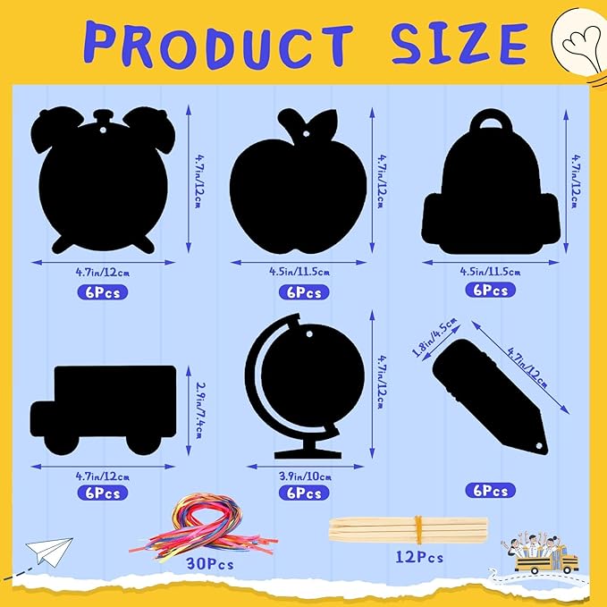 - Package Content:You will receive 36 pieces 6 styles of back to school scratch art for kids (12 cm/4.7 inch), including 36 colored ribbon and 12 bamboo sticks, which are diverse in styles and sufficient in quantity. The back to school crafts for kids are ideal back-to-school gifts for children and create a happy back-to-school atmosphere for teachers and students