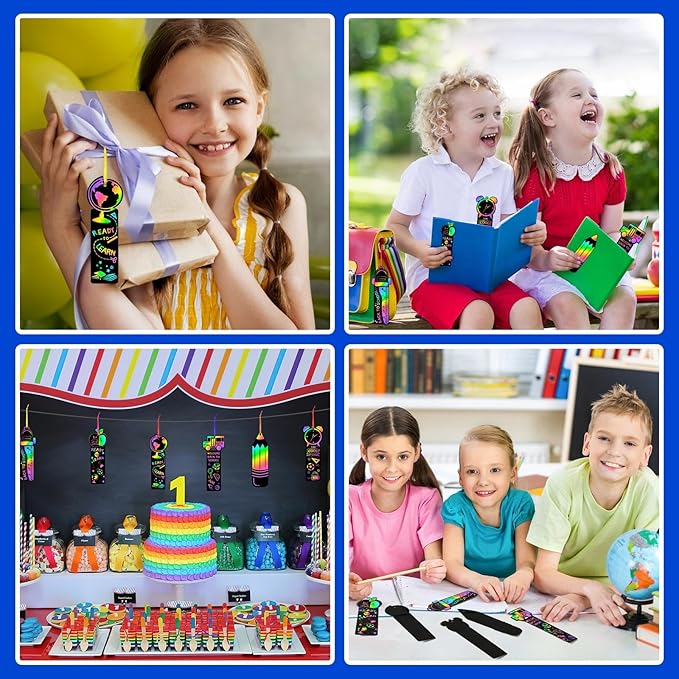 - Widely Used: In addition to being used as a bookmark, the rainbow scratch paper can also be used as back to school DIY craft, back to school gift kit, back to school gift party favors. First Day of school gifts, back to school gifts for students, back to school gifts, classroom decorations, birthday parties, school activities, gift tags, school projects, classroom rewards, family entertainment, etc