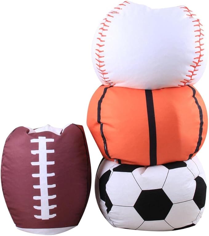 Storage Bean Bag Chair 18 Inch Beanbag Cover with Zipper for Kids Plush Toys Game Play (Football)