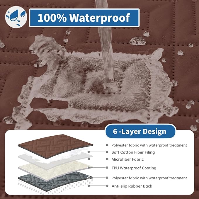 - 【100% Waterproof Protection】Put our recliner cover to the test! The unique waterproof technology can be easily verified, giving you confidence in its effectiveness against liquid mishaps. Say goodbye to worries about spills, stains, pet and baby urine, as this recliner slipcover ensures your furniture remains spotless and dry at all times.