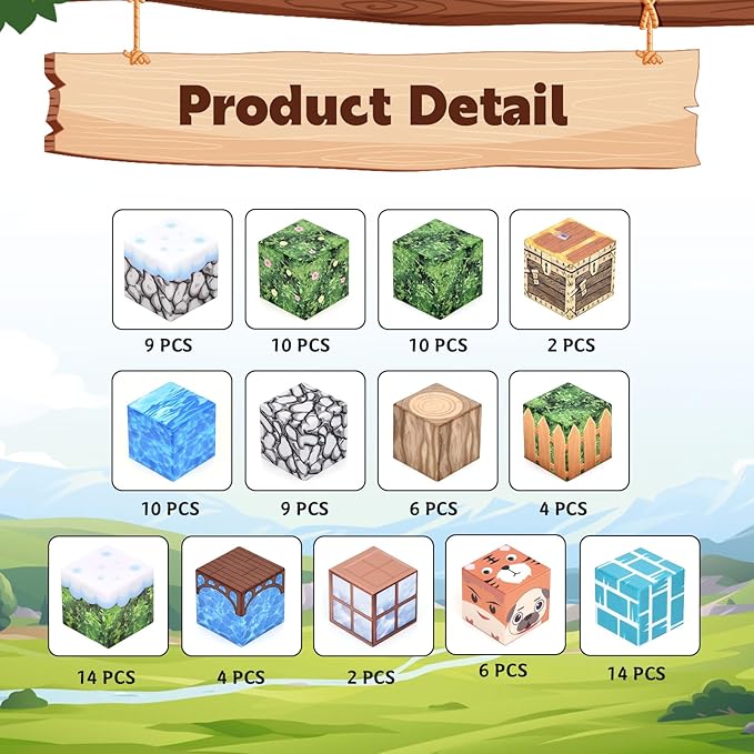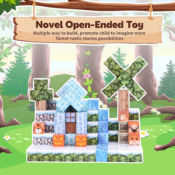 - 【Build Your Own Mini World】Our Magnetic Cubes Building Blocks open up a dream world of possibility for everyone, from simple to challenging construction, offers endless creative opportunities for children to design and construct various structures. Players can bring their imaginative visions to life with these magnetic blocks in different patterns! Children get a strong sense of color, magnetic polarity and architectural design from an early age and it awakens their creative genius, more cubes, more possibilities