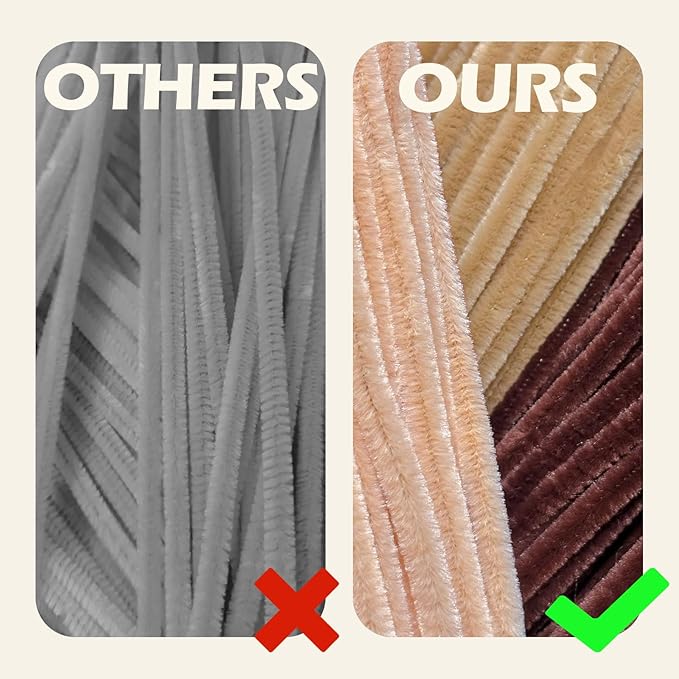 - Warm Brown Collection: 300 versatile pipe cleaners in 3 shades of brown inspired by the rich hues of the Maillard reaction, perfect for crafting lifelike animals and plants.
