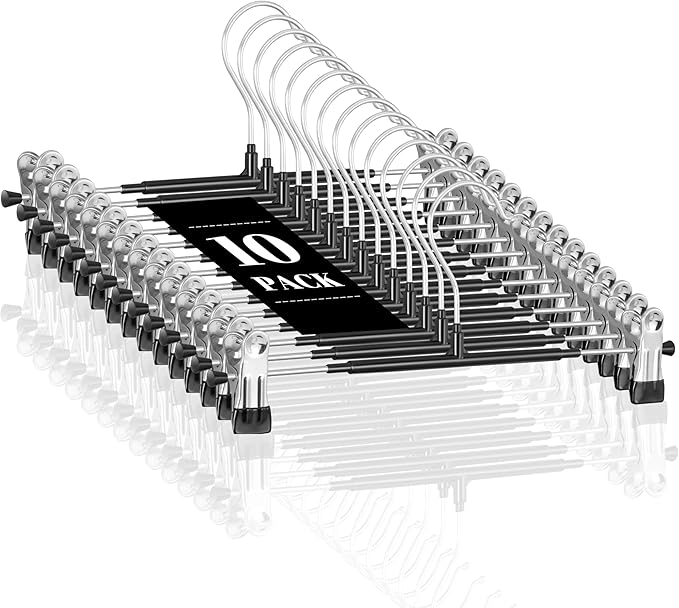 10 Pack 14Inch Heavy Duty Pants Skirt Hangers with Clips,Metal Trousers Hanger for Jeans Black Non Slip Women Shorts Hangers Saving Space Clothing Hanger for Adult,Men,Children,Kid,Baby