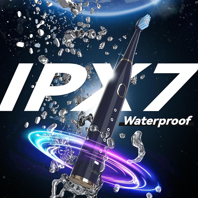 7AM2M Sonic Electric Toothbrush for Adults and Kids- High Power Rechargeable Toothbrushes with 8 Brush Heads,5 Adjustable Modes, Built-in 2-Minute Smart Timer,4 Hours Fast Charge for 30 Days(Navy)