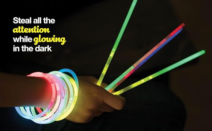 - Glow In The Dark Party Supplies 100 Pack Long Lasting Glow Sticks with 100 Connectors For Glow Bracelets, Waterproof Sturdy Design, Bendable Without Breaking - Comes Packed In Special Tube For Easy Storage
